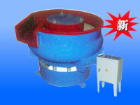應用了國際上先進三元振動加工原理。當工件、成形磨塊、化學磨液和水按一定比例放人光整機的容器中。然后啟動振動電機。振動電機軸的上下兩端裝有偏心鐵塊,它們在水平面上的投影互成一個直角,當振動電機高速旋轉時,兩個偏心塊產生在水平面內沿圓周方向變化的激振力(離心力),使機體產生水平面內的圓周運動,同時由于激振力不通過機體的質心。因而產生激振矩(即傾倒力矩)使容器繞水平軸搖擺,由于容器底部呈圓環形狀、各點的振幅不一致,使容器中的成型磨塊和工件既豎直中心軸線公轉,又繞圓環中心翻滾,其合成運動為環形螺旋運動,同時容器有一螺旋升角,成型磨塊和工件沿螺旋面向上滑行,使工件和成型磨塊在運動時增加了摩擦力,提高了光整效率。容器為了減少工作中磨塊的和工作對其的磨損,降低噪音,在其內壁掛涂耐磨橡膠或聚氨脂。為了改善工作環境,又可另外配置消音罩,適用于小中大零件的光整加工。