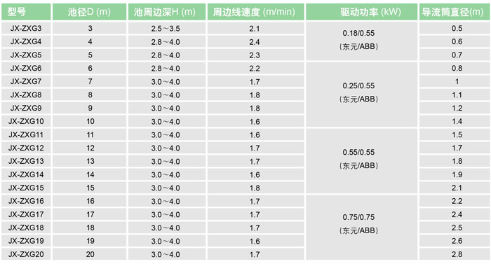 橋架式中心刮泥機(jī)的型號及參數(shù)表